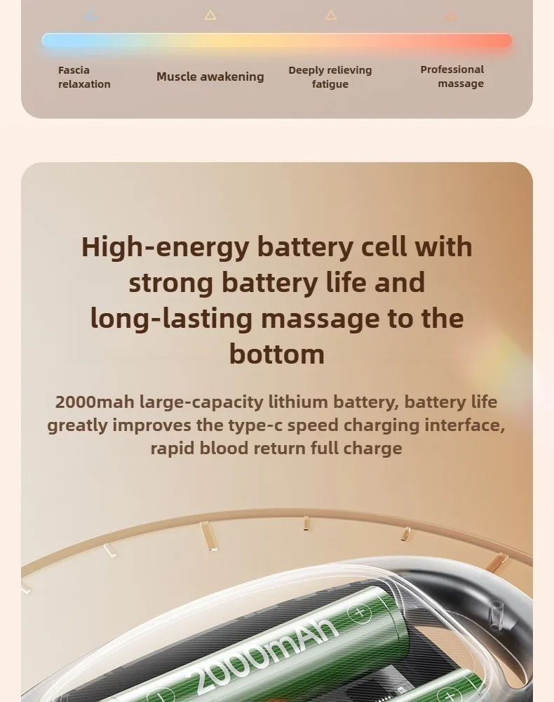 Our massage devices are designed for the neck, shoulders, back, arms, and legs. Each model includes multiple interchangeable heads to target different muscle groups comfortably and safely for daily use.